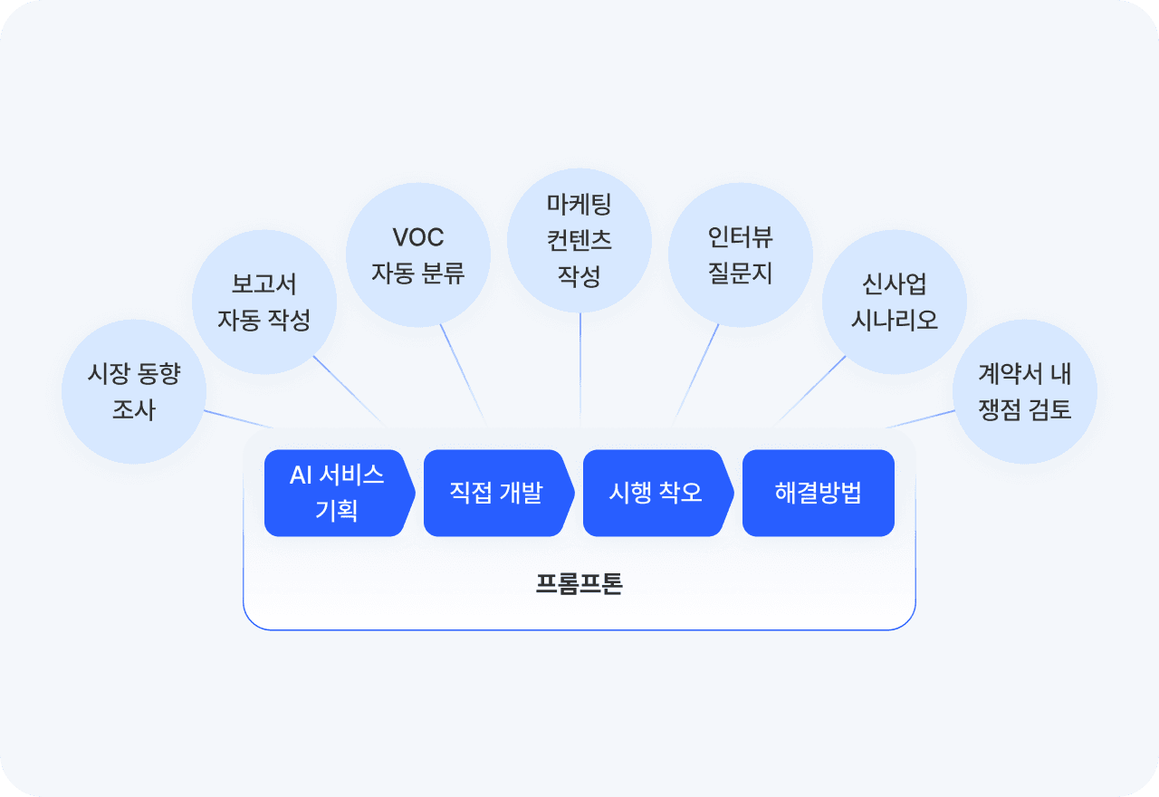 직원들이 스스로 AI 활용 아이디어를 도출하고, 비즈니스 사례를 발굴하는 힘을 기릅니다.